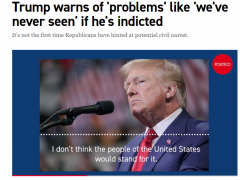 特朗普:若我被起诉美国会有大问题 特朗普警告:如果我被起诉,美国会有“前所未见的大问题”