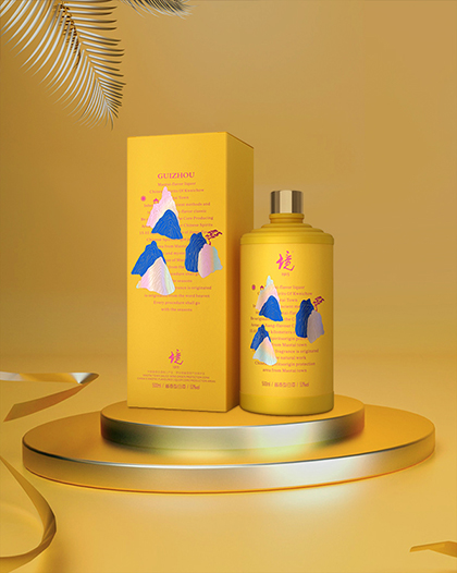 炫彩镭射烫金是包装的主体与亮点,潮流字母拼接,直指“贵州”产地佳酿。将传统古法酿酒工艺镌刻于包装之上,彰显品牌酿造匠心。克莱因蓝与奢金搭配的瓶身彰显潮流典范与大气之感。