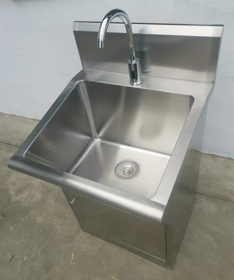 不锈钢洗手池出水方式分为:感应式、膝碰式、脚踏式