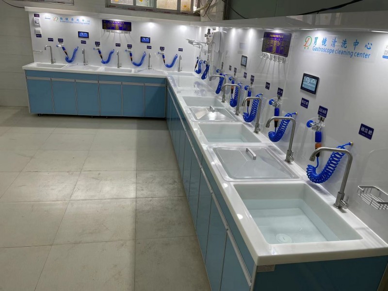 内窥镜清洗工作站是我公司根据卫生部《内镜清洗技术操作规范(2016年版)》的要求,结合国外先进技术及工艺,产品采用人性化及标准化设计、选材精良考究、配置灵活性强、自动化程度高、操作简洁方便、使用安全可靠、性价比高、清洗效果显著,广泛适合国内不同规模医疗机构开展内镜及其它器械清洗工作,是一种为内镜诊疗工作中对内镜清洗的设备。它由台面/清洗槽,柜体/功能背板,豪华内镜干燥保养台,自动灌流器,空压机,高压水枪,专用水龙头,内镜吹干机,灌流器自动接头,水源中心控制系统,中心电源控制系统,中心气体处理器,过滤水装置,专用方槽盖,内镜侧漏系统等,可选配追溯系统,超声波清洗机,纯水机,内镜转运车等。