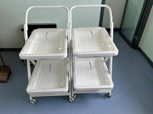小推车二层、三层独立式设计,周转盘材料由高分子复合材料独立开模制成,车体由钢体喷塑而成,具有耐腐蚀、不沾水、车行顺畅、取放方便等优点。盘内内镜存放导航隔条使污染部分分离。多层设计使客户在使用过程中可将清洁和污染的内镜分层标明后置放,可达到高效周转,避免交叉感染等功效。