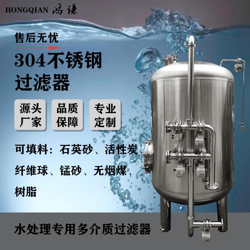 根据滤料介质有所不同,用途与作用也各有区别,一般有石英砂、活性碳、锰砂、无烟煤等。滤料选用石英砂又叫做石英砂过滤器,滤料选用无烟煤称为无烟煤过滤器,滤料选用锰砂(除铁、锰)称为锰砂过滤器,滤料选用活性炭则成为活性炭过滤器。也可以组合使用。锰砂过滤器的主要功能是清除悬浮物、机械杂质、有机物,降低水的混浊度,吸附、去除水中的色素、铁离子等,该机可根据过滤量而选定规格的大小,使用及操作非常简便。