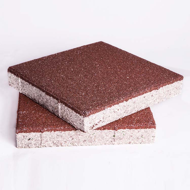 4、抗冻融、耐寒、不褪色:陶瓷透水砖采用高温陶瓷色料经过1200℃烧制而成,其烧成时间为8-9小时,高温烧制使陶瓷透水砖具有抗风化、耐时效性变化、不褪色、抗冻耐寒等特点。