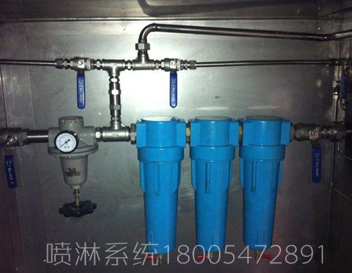 气幕喷淋系统主要包括气幕装置,喷淋装置,气幕喷淋控制箱,汇流排,减压器,高压管,截止阀等。