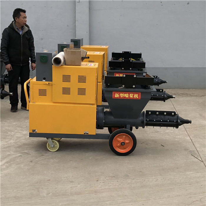 水泥砂浆喷涂机节能。冲洗过的管道必须再次进行润管操作,否则很容易再次产生堵管,因冲洗过的管道会残存部分水分和砂,砂浆遇水易致离析,从而降低了砂浆的流动性而产生堵管。砂浆输送设备产生堵管时应立即停机,先松开水平与垂直管道连接的接口,可以尝试再次启动输送设备,水平管内轻微的堵管都可以通过再次启动机器进行排除。一般情况下堵管都在弯头或垂直位置处,垂直位置的堵管只能用水冲洗管道进行排除,选择合适的软管进行冲洗处理,应从下往上进行冲洗,垂直距离过高时,还应卸开中间部分管道进行处理,中间管道拆卸时应注意安全。冲洗完成后重新装回管道,再次开始输送砂浆前应进行润管处理。另外以下情况也会造成堵管,需要注意:砂浆颗粒太大堵喷嘴、堵喷头致堵管。