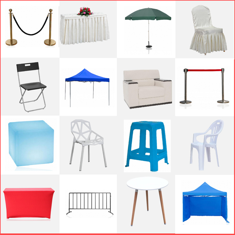 4. 会议用品租赁(各型展览蓬房租赁、5000米桁架租赁、标板租赁、会议背景板租赁、会议桌椅租赁、吧桌吧椅租赁、沙发茶几租赁、道旗旗杆租赁、灯光音响租赁、投影设备租赁、帐篷租赁、隔离栏租赁、空调租赁、户外取暖器租赁、广告伞租赁等)