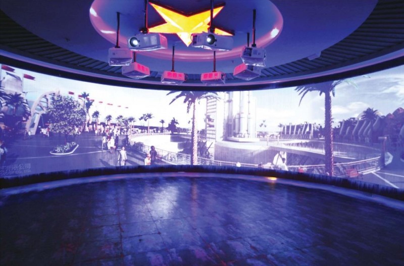 360度环幕:弧度为360度全封闭称作360度环幕。